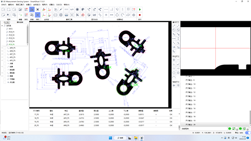 2D尺寸测量传感系统无需编程,支持各类产品CAD图档导入,通过解析图纸里的线条位置信息,快速生成测量程序,相关参数设置便捷,操作简单,易上手,省去选型、调试视觉效果及编写检测程序等环节;而且产品在影像视野范围内可任意方向摆放,无需夹具定位,一键完成测量,快速输出检测报告,仅需数秒就能完成300个部位的测量,大幅度缩短测量工时,为工业制造提供标准化的测量方式。